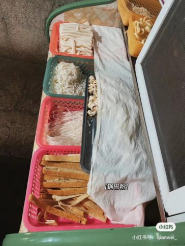 聽名字就知道多有特色了吧??诟泻塥?dú)特,用特殊的大米制作,成薄紙狀,綠色,切成長(zhǎng)條狀后煮熟。